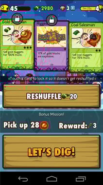 Ainsi bombes, grenades, gaz explosif, marteau piqueur et j'en passe, tout ce petit monde pourra vous aider à accélérer votre progression souterraine et ainsi économiser le compteur de frappe de votre pioche. Entre chaque partie vous aurez accès à un petit menu vous proposant d'améliorer votre pioche (moyennant finance, in game ou achat en argent réel) et vous pourrez repartir à l'aventure.