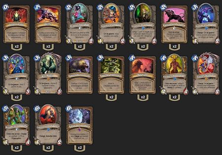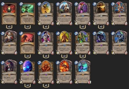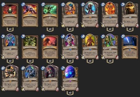 Le deck est légèrement différent du druide "late-game", celui-ci est plutôt "mid-game" avec de nombreuses créatures avec un coût en mana de 4/5/6, les Anciens du Savoir ont disparu laissant place à l'Ancien de la Guerre !