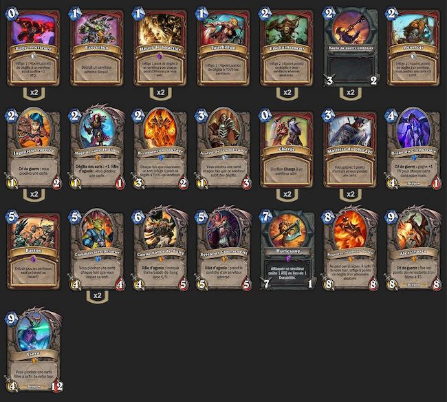 Un deck guerrier combo (Hurlesang ; Alexstrasza + Charge), tout en ayant des serviteurs early, mid et late-game et des sorts permettant certaines combos pour gérer le plateau adverse. Un mix idéal, pour parer à tout type de deck, pas étonnant que cette composition se retrouve dans le top des decks EU de la MLG.