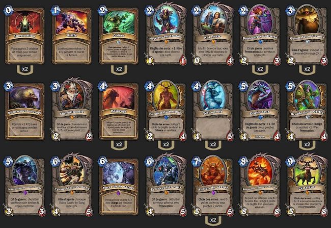 Fin de partie : Ragnaros seigneur du feu, Ysera, Grommash Hurlenfer... vous permettront de plier rapidement une partie qui s’éternise, n’oubliez pas la synergie entre Grommash et le Sous-chef cruel, pour 10 de cristaux de mana vous pouvez infliger 12 dommages !