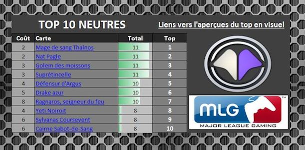 Gardez à l’esprit que ces statistiques ne sont basées que sur un seul type de tournoi (MLG), ce n’est donc pas une vérité absolue. Mais cela nous donne une tendance qu’il convient de prendre en compte. Pour autant, évitez de suivre bêtement ce tableau. En effet, vous ne pouvez espérer gagner qu’en associant des cartes synergiques dans un deck qui sera le reflet de votre propre gameplay. Au mieux vous pouvez copier un deck existant et le modifier selon vos préférences, mais copier une liste de carte (un top 10 qui plus est) pour les mettre dans un seul et même deck reviendrais à créer un deck fourre-tout, sans aucun sens. Ces cartes sont donc un reflet de la méta des tournois de la MLG.