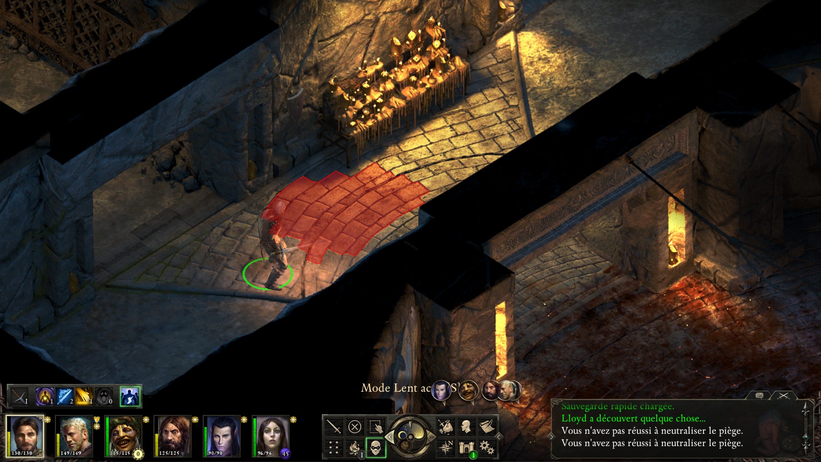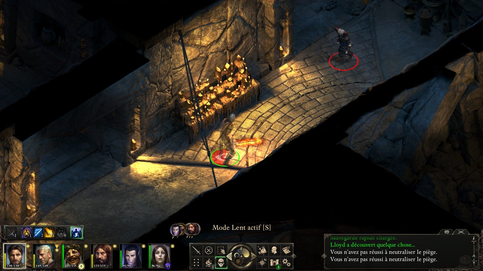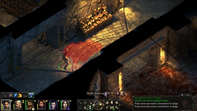 Avec la mécanique, la furtivité est sans conteste la compétence à maxer le plus vite possible. Il est vrai qu'il est bien souvent tentant de foncer tête la première et d'enchaîner les combats, mais même si cette technique fonctionne sur les premiers donjons, vous risquez de bien vite vous mordre les doigts à vouloir aller trop vite. Du coup, la solution est simple : activer le mode furtif et y aller à tâtons, quitte à enclencher le mode rapide afin d'avancer plus vite et gagner un peu de temps. Concrètement, la furtivité vous permet de détecter les pièges (ces derniers peuvent être désamorcés avec un niveau de Mécanique suffisamment élevé) et de surprendre vos ennemis. Le champ de vision de ces derniers est indiqué par un cercle jaune lorsqu'ils se doutent de quelque chose (image 1) qui vire instantanément au rouge dès que vous vous faites repérer (image 2).