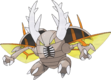 Méga-Scarabrute est une énorme menace offensive, avec son Attaque de 155 et son Talent Peau Céleste qui lui permet de STAB sur Retour et Vive-Attaque. Il peut aussi se booster avec Danse-Lames. Sa puissance se démontre par le fait qu'il se permet de OHKO Méga-Lockpin ou encore Méga-Dardagnan avec sa Vive-Attaque. Il est néanmoins sensible aux Pièges de Roc et aux Pokémon Electrik, souffre d'un movepool assez limité et est très prévisible, donc contrable. | |