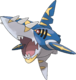 Encore un Pokémon profitant de Glissade pour devenir une bonne menace offensive sous la pluie. Il profite en effet d'une Attaque Spéciale de 115 et du gros STAB Hydrocanon. Il se couvre avec Laser Glace et peut aussi utiliser Ebullition ou encore Sabotage pour support sa team. Mais il est très très lent sans la pluie (55 Spe), ne profite pas de STAB Roche et son typing est assez mauvais défensivement, le rendant vulnérable au move de priorité Mach Punch. | |