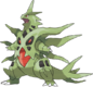 Sa Vitesse de 145 fait de Méga-Jungko le Dragon le plus rapide sans boost ni item. Il profite aussi d'une bonne Attaque Spéciale (145) et des bons STABs Tempêteverte et Dracochoc. Il se couvre efficacement avec Exploforce ou PC Feu. Son Talent Paratonnerre peut aussi se révéler utile contre un adversaire inattentif. Mais sinon, il est faible défensivement (70 HP/ 75 Def/ 85 SpD) et est faible à de nombreuses menaces omniprésentes du métagame comme Flambusard, Dimoret, Mammochon, Méga-Cizayox ou encore Scalproie. | |