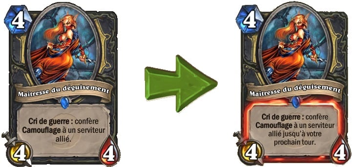 Cri de guerre : confère Camouflage à un serviteur allié jusqu'à votre prochain tour. |