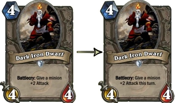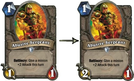 | Nouvelle mécanique | Cri de guerre : Confère + 2 ATQ à un serviteur pendant ce tour. |