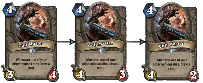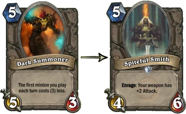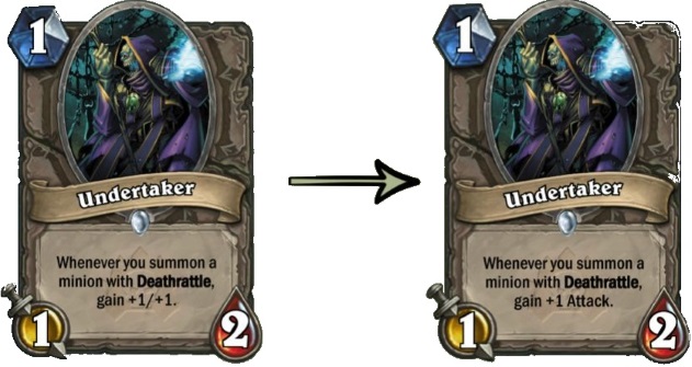 | Nouvelle mécanique | Gagne +1 ATQ chaque fois que vous invoquez un serviteur avec Râle d'agonie. |