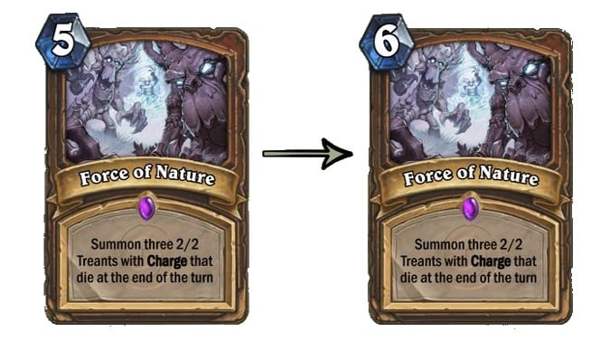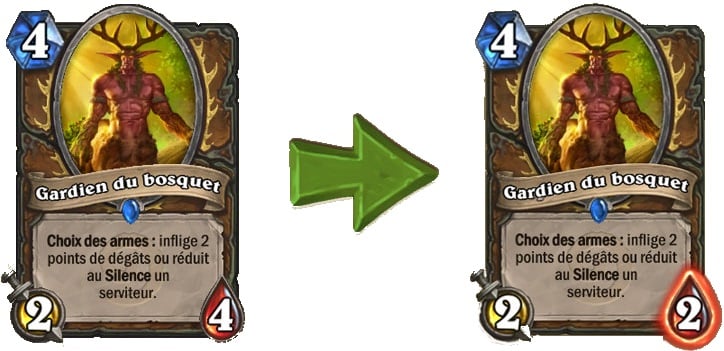 | REFONTE | Ancienne mécanique | Invoque trois tréants 2/2 avec Charge qui meurent à la fin du tour. |