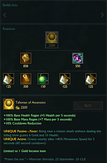 | Cout réduit à 2700 golds au lieu de 2750 Régen. de santé réduite à 125% au lieu de 150% |