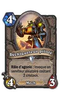 Suggestion de Lothar : Augmenter également le coût en mana à 3 au lieu de 2. "L'ultime carte à effet boule de neige. Je la déteste. Trop de parties se décident sur un jet de dés à 50/50. De cette manière nous pouvons redonner de la viabilité à deux autres tour 2, avoir de nouveaux serviteurs intéressants dans les decks, il ne peut plus être un Déchiqueteur piloté pour 2 plus longtemps." |