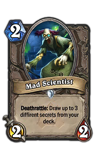 Suggestion de Lothar : Râle d'agonie : Pioche 3 secrets "Est ce que cette forme est trop puissante ? Je n'en suis pas sur. Mais ça l'est toujours moins que sa forme initiale, de plus il pourra au moins rendre viable le Mage du Kirin'Tor." |