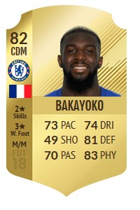 Comme si un excellent milieu français à Chelsea ne suffisait pas, Tiémoué Bakayoko arrive et s'impose sur FUT 18 comme le milieu de terrain parfait pour cet opus malgré son 82 de général. Si Kanté reste exceptionnel, son collègue a l'avantage physique de part sa taille et sa force qui cette année sont primordiales. |