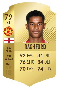 C'est le joueur avec le plus petit général de ce classement, mais Marcus Rashford est vraiment bluffant sur FUT 18, si on s'attendait à ce qu'il soit légèrement amélioré par rapport au précédent opus, on ne s'imaginait pas qu'il serait d'un tel niveau en jeu. Son accélération est incroyable et comme en vrai, son physique et son mètre 85 lui permettent de s'imposer dans les duels ce qui est rarement le cas des joueurs très vifs. |