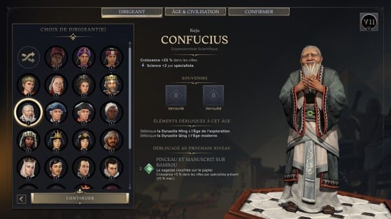 - L'héritage scientifique implique de créer plusieurs villes dotées de bibliothèques puis de rechercher les perfectionnements des technologies. Cherchez la ligne "Octroie 1 Codex" ensuite, débloquez-en autant que possible.