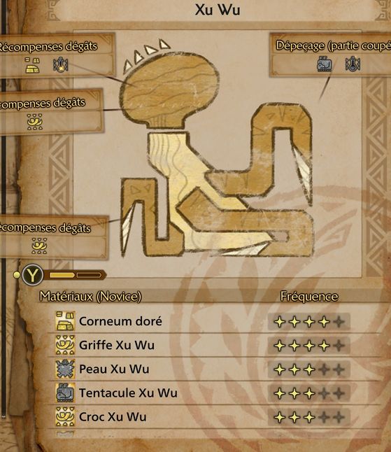 C'est bien plus difficile à mettre en œuvre que sur le Nu Udra, mais vous pouvez couper jusqu'à 4 tentacules du Xu Wu, ceux situés sur les côtés et à l'arrière. Vous pouvez ensuite les dépecer individuellement pour obtenir du butin supplémentaire. Les deux tentacules à l'avant peuvent seulement être brisés.