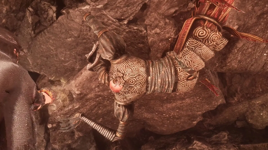 - Le second œil, et c'est très probablement celui à côté duquel vous êtes passé sans le voir, se trouve au plafond, lorsque vous passez sous les rochers pour accéder à la zone où se trouve le pont. Un contorsionniste se trouve au plafond avec un œil sur lequel il vous faudra tirer.
