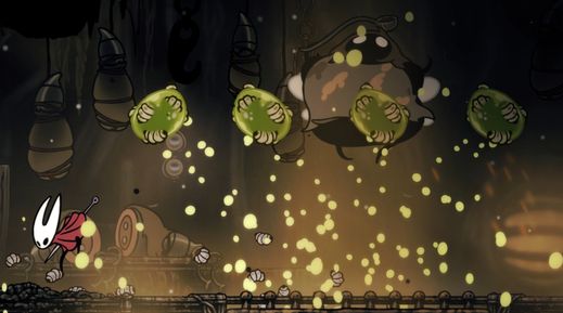 - Les attaques de ce boss sont simplistes, il se contente de projeter des gouttes de Plasmonium en l'air, qui retombent dans la zone en explosant. Elles infligent de lourds dégâts à Hornet, mais ce qui n'est pas immédiatement évident est qu'elles soignent aussi Zango, s'il est touché ! C'est pour cette raison que le boss semble immortel, il se soigne à chaque fois, s'il est mal géré.