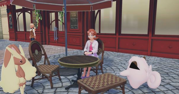 - Allez au Café Slalom à l'ouest de la carte, juste à l'entrée de la zone sauvage 9, pour voir Dorlothée assise en terrasse avec ses Pokémon