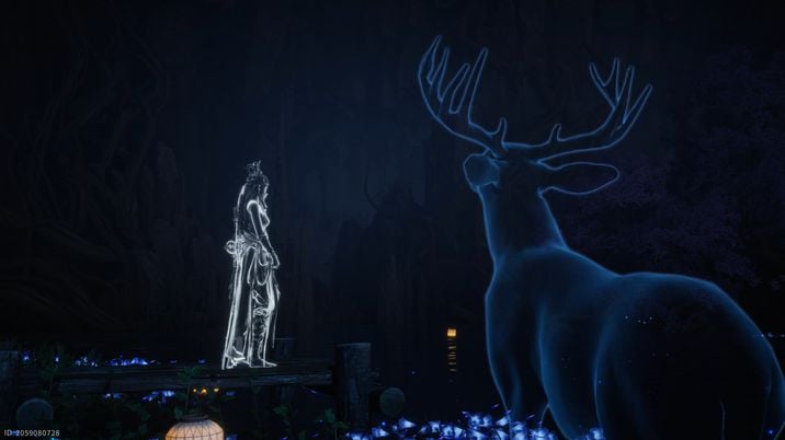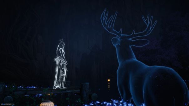 - La troisième torche allumée, un nouveau chemin va se débloquer : retournez sur la rive du bassin pour que les sauts se déclenchent automatiquement jusqu'à ce que vous arriviez devant la nouvelle ombre du cerf