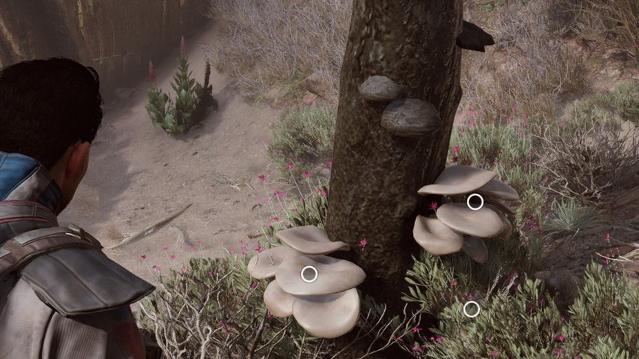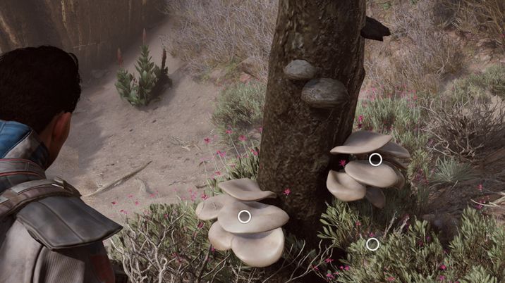 - Se balader à l'aveuglette dans le Champ de bataille du barrage n'est pas toujours très rentable, puisque la position des champignons est aléatoire. Certains événements météorologiques peuvent aussi les faire disparaître. D'après notre expérience, le meilleur endroit pour récolter rapidement des champignons est la petite oasis naturelle nichée au milieu des structures et des rails au Nord du Port spatial.