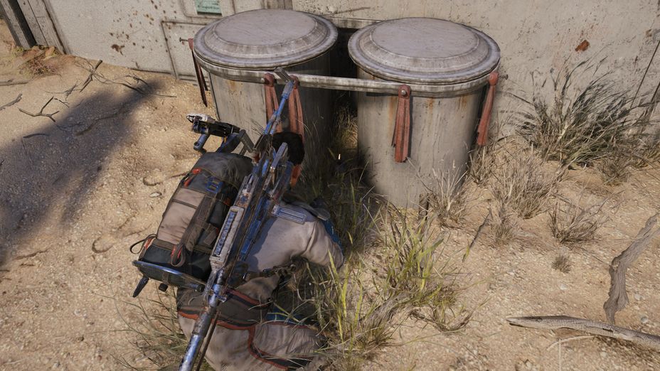 - Approchez de ce qui ressemble à deux poubelles ou à deux bidons métalliques contre le mur. Inspectez-les lorsque le bouton d'interaction jaune apparaît à l'écran.