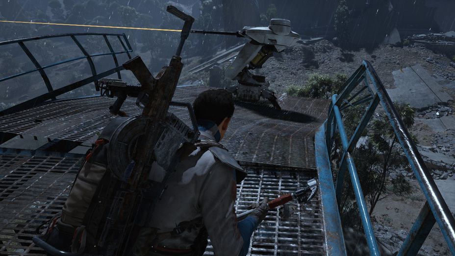 - Il est possible d'approcher discrètement dans leur dos, mais elles résistent à plusieurs coups de hache et elles peuvent vous tirer dessus en mêlée, voire vous pousser dans le vide, si vous n'avez pas de chance. Il vaut mieux vider votre chargeur dans une partie non blindée. Notez au passage que son précieux Noyau de tir de sentinelle a aussi tendance à tomber en contrebas à sa mort, ce qui vous demandera d'aller le chercher.