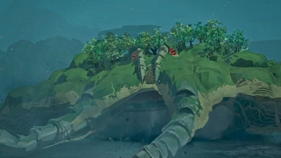 Choisissez le point de voyage du campement situé près de Shao Lan pétrifié géant. Utilisez les courants aériens ascendants pour atteindre le monstre. Il n'y a pas besoin d'escalader la statue géante.