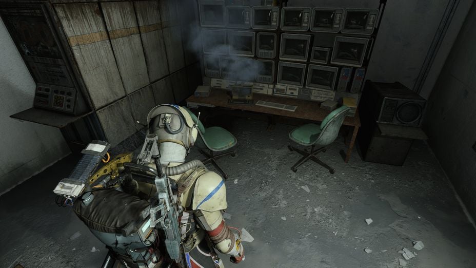 - L'étape suivante vous demande de visiter la salle située un étage au-dessus (le quatrième), sa position est exactement la même sur la carte. Utilisez l'imprimante au fond à droite, pour tenter d'obtenir une carte d'accès. Malheureusement pour vous, les choses ne se déroulent pas comme prévu et dans l'univers d'Arc Raiders, les imprimantes sont défectueuses aussi.