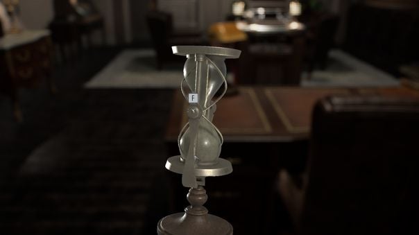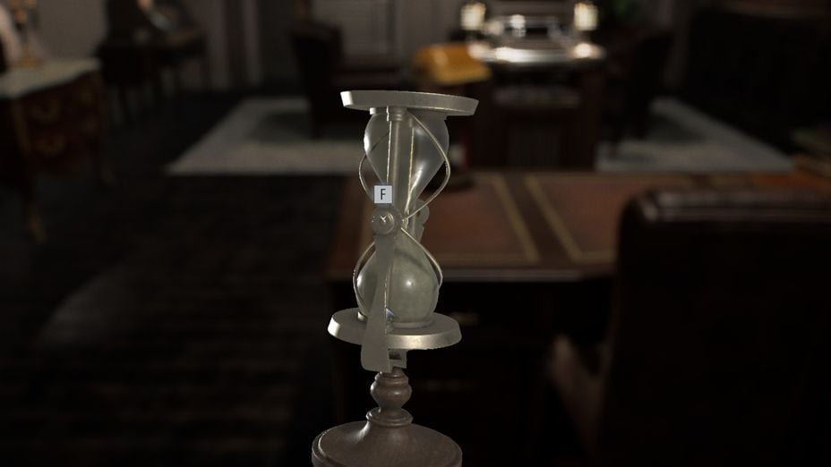 Si vous n'avez pas encore trouvé la Double hélice, le Sablier peut sembler être la clé d'activation du mécanisme au milieu du bureau, mais ce n'est pas le cas. Une petite animation est jouée et elle montre que le Sablier est trop large pour passer. Le problème est évidemment que le Sablier est conservé, même après avoir résolu le puzzle, alors qu'il n'a pas d'utilité apparente.