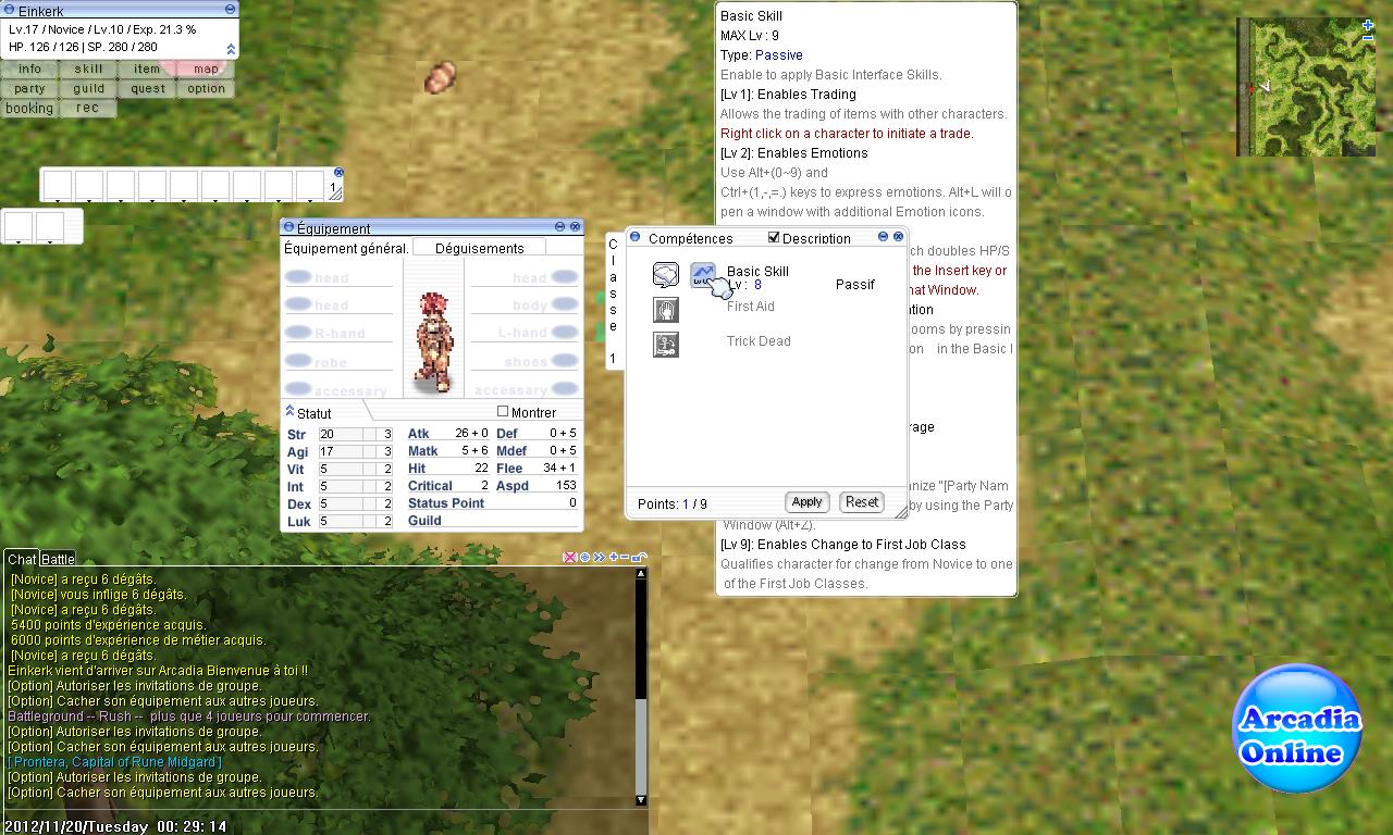 - 2 système de niveaux : Dans RO vous pourrez monter en parallèle votre niveau de base et votre niveau de classe. Le niveau de base vous permet d'augmenter vos caractéristiques et celui de classe servira à améliorer vos sorts.