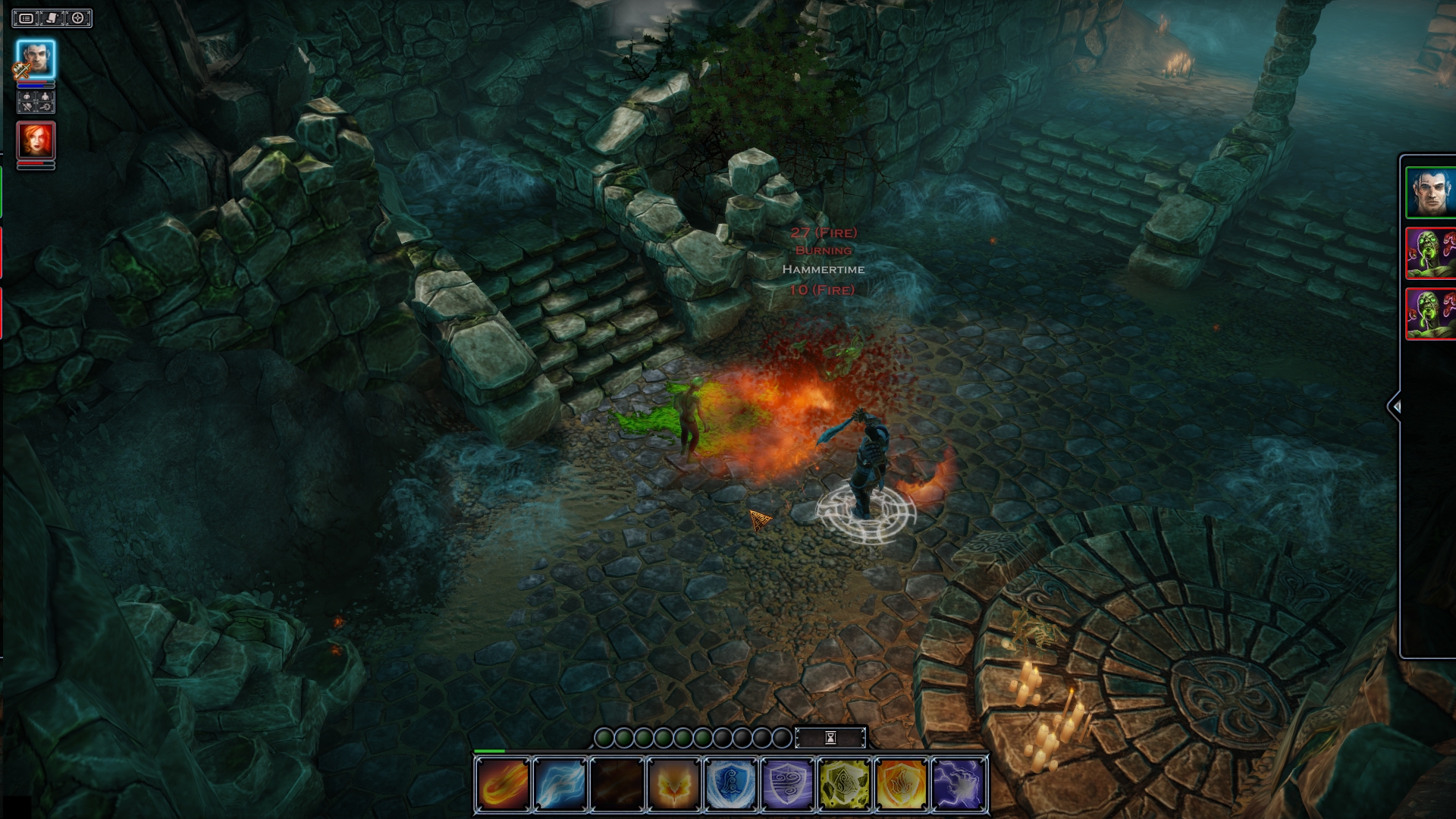 Aussi déconcertant que cela puisse paraître de nos jours, il ne s'agit pas du tout d'un A-RPG mais bel et bien d'un RPG au tour par tour à la Fallout (les vrais, c'est à dire les deux premiers). Chacun de nos personnages dispose d'un certains nombre de PA (Points d'Actions) et chacune de vos actions nécessite l'usage de ces PA. Quand vous n'en avez plus, c'est au prochain d'agir selon l'ordre établi sur la droite de l'écran. Un système bête comme chou et qui a déjà fait ses preuves certes, mais diablement efficace !
