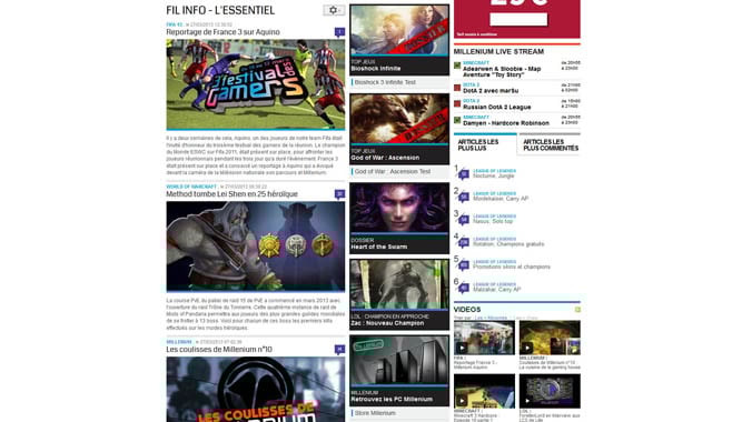 Il y a deux semaines de cela, la page d'accueil de Millenium évoluait pour vous présenter l'actualité de manière plus pertinente, en classant les guides et actualités que nous traitons en différents meta-portails correspondant au sujet de prédilection du site : eSport, MMO, Top jeux et Lifestyle.