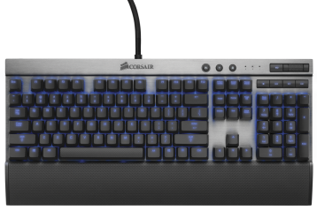 Le Vengeance K65 quant à lui est conçu pour les joueurs nomades ou ceux disposant d’un espace limité. Le clavier est entièrement mécanique et c’est le plus compact de toute la gamme Corsair en effet Corsair a réduit la taille de ce dernier en éliminant le pavé numérique. Toutefois Corsair a conservé le même espace entre les touches, pour ne pas perturber le joueur dans son confort d’utilisation. Le K65 est équipé de Cherry MX Red. Il dispose bien évidemment de la technologie antighosting. Petit plus car étant un clavier nomade Corsair l’a équipé d’un câble amovible pour faciliter le rangement et le transport.
