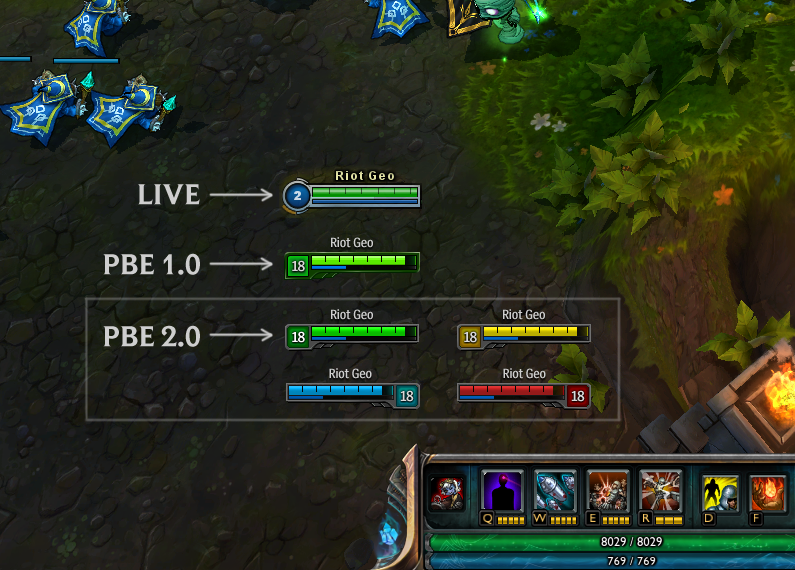 C'est pour remédier à la question que les équipes Riot se sont attelées à revoir le graphisme des barres de vie. Nouvelles couleurs, nouveau design, tout est voulu pour un maximum de clarté et de fonctionnalité pour l'utilisation que vous êtes. Découvrez donc la collection automne-hiver 2013 sur PBE.