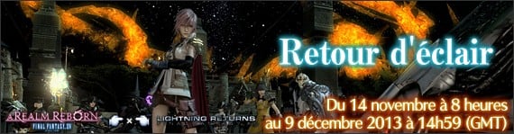 Nous vous parlions il a de cela quelques temps d'un évènement spécial mêlant Final Fantasy XIII et FF XIII qui se déroulait en Eorzéa. Une guerrière inconnue apparue de nul part détruisant tout sur son passage avec rage et puissance. Cet évènement est de retour du 1er septembre au 10 septembre (14h59). Découvrez le Retour d'éclair.