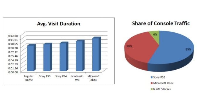Toutefois Pornhub a pu mettre en évidence que les utilisateurs de consoles avaient tendance à rester plus longtemps sur leur site que ceux sur PC. Ceci pourrait venir des problèmes de connectivité liés aux machines de salon, ou bien tout simplement à une population plus jeune en pleine phase de découverte ... Autre idée plus pertinente mise en avant, il est plus difficile de taper sa recherche à la manette et cela prend par conséquent plus de temps, surtout lorsque l'on fait cela à une seule main ! Autres données impressionnantes : 55% des joueurs console visitant Pornhub sont sur PS3, 39% proviennent de la Xbox 360 et seulement 6% de la Wii (encore heureux pour une console familiale vous direz-vous).