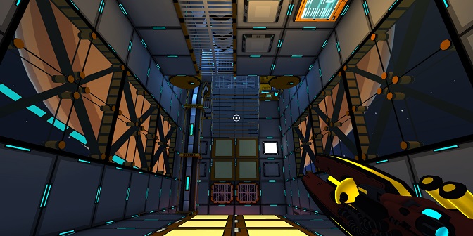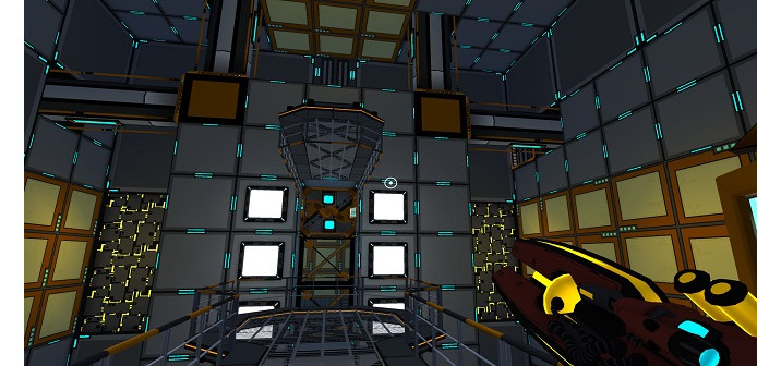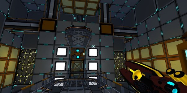 Vous possédez un pistolet capable de donner un sens à la gravité. Pour ce faire, vous devez tirer sur les zones jaunes (comme sur l'image qui suit). Lorsqu'elles sont allumées, vous serez attiré de ce côté.