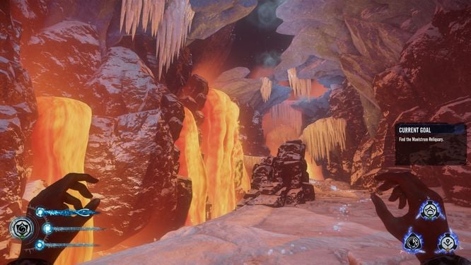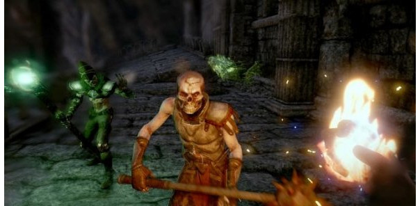 Lichdom : Batllemage fait partie de ces jeux faciles à jouer, mais difficiles à maîtriser. Tout d'abord il faut savoir que c'est un Beat'em all en vue à la première personne, un genre, plutôt rare de nos jours, démocratisé surtout par Serious Sam, à la différence qu'ici, vous envoyez de la purée de magie au nez de vos ennemis. Comme dit un peu plus haut, le jeu n'a rien de compliqué, un bouton pour lancer un projectile de magie, un autre pour brandir son bouclier magique, si on appuie sur les deux en même temps on peut déclencher une zone où l'on veut sur les ennemis et enfin un autre pour faire des esquives. Ce qui va être intéressant derrière, c'est la possibilité de crafter ses propres sorts, c'est-à-dire de changer le type de projectile (en ligne droite, en bombe ou en laser) de votre sort de zone (une zone qui explose, un piège ou une pluie élémentaire) ou de votre bouclier (type d'effet passif ou type d'esquives) auquel on rajoute tout un tas de caractéristiques.