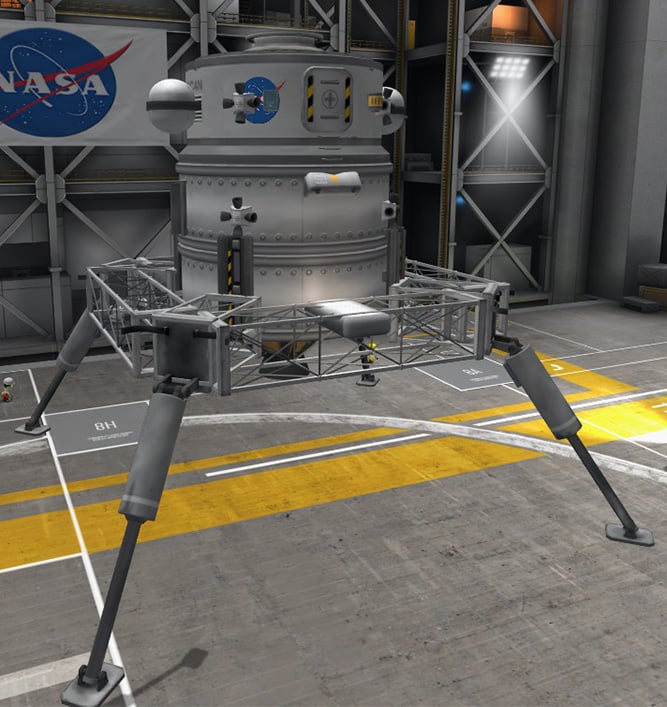 Le module de commande est divisé en deux parties distinctes : le module lui-même et le LEM. Pendant que le module sera en orbite autour de la Lune, le LEM alunira afin que les Kerbonautes puissent poser le pied sur le sol lunaire. Ce lander pèse 16,37t avec les réservoirs pleins. Pour alunir, il doit utiliser moins de la moitié de ses réserves de propergol. Les trains d’atterrissage vous permet de vous poser en douceur sur le sol lunaire. Lors du redécollage, la plate-forme sur laquelle sont attachés les trains d'atterrissage se détache du LEM. Plus léger, il peut donc rejoindre plus facilement le module de commande.