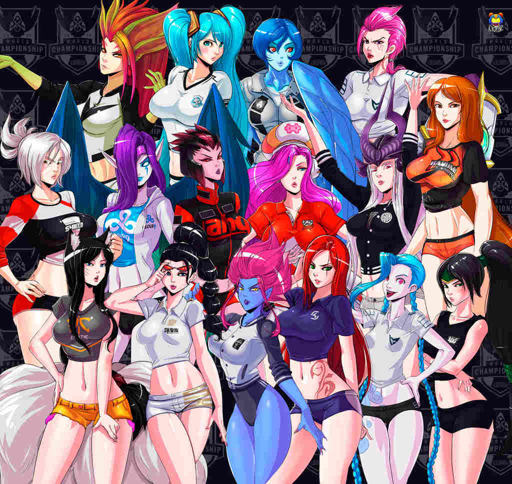 Et pour ceux qui n'auraient pas suivi l'actualité (encore elle) eSportive des dernières semaines, Kyoffie12 nous propose sur sa page DeviantArt un bref résumé de la saison en regroupant sur une même image les seize équipes qui s'affronteront très prochainement, voire dès maintenant pour certaines, sous vos yeux. Choix intéressant, l'artiste a choisi de représenter les équipes par un champion. Si les traits anatomiques de ces championnes (oui, car il ne s'agit que de jeunes femmes) sont parfois poussés à l'extrême, dans un style propre au dessin-animé plus ou moins tout public, les représentations sont fidèles, et les personnages tous identifiables. L'idée est intéressante, et la réalisation très réussite.