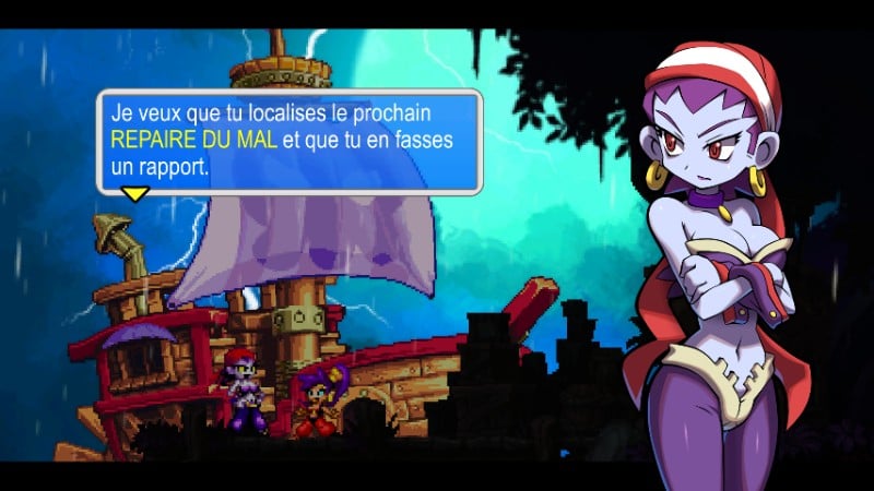 En effet, vous aurez par exemple la possibilité de sauter plusieurs fois, de tirer, de planer ou encore de faire des attaques verticales. Le jeu prend un aspect RPG puisque l'on peut améliorer l'ensemble de ces éléments pour être plus efficace. L'équipement de Risky permet donc à Shantae d'être efficace malgré la perte de ses pouvoirs, car attaquer avec des cheveux ça ne suffit plus. Concernant la durée de vie du jeu, si vous n'êtes pas pressé, il vous faudra en moyenne une bonne dizaine d'heures pour finir le soft, un peu plus si vous souhaitez le terminer à 100%. À noter que l'ultime boss n'est débloqué que lorsque vous aurez trouvé les vingt Tinkerbats corrompus. Ceci donne droit à la réelle fin ainsi qu'à un New Game +.