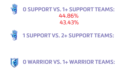Les résultats ci-dessus indiquent clairement qu'une équipe privée d'un personnage de soutien a moins de chances de l'emporter qu'une équipe qui en compte au moins un dans ses rangs. Ces données et les réactions de la communauté nous amènent donc à ajouter une nouvelle règle à celles que nous avons détaillées dans notre article intitulé Le fonctionnement du système d'association de Heroes of the Storm, que nous avions publié le 8 août 2014. Une mise à jour prochaine apportera ainsi les modifications suivantes :