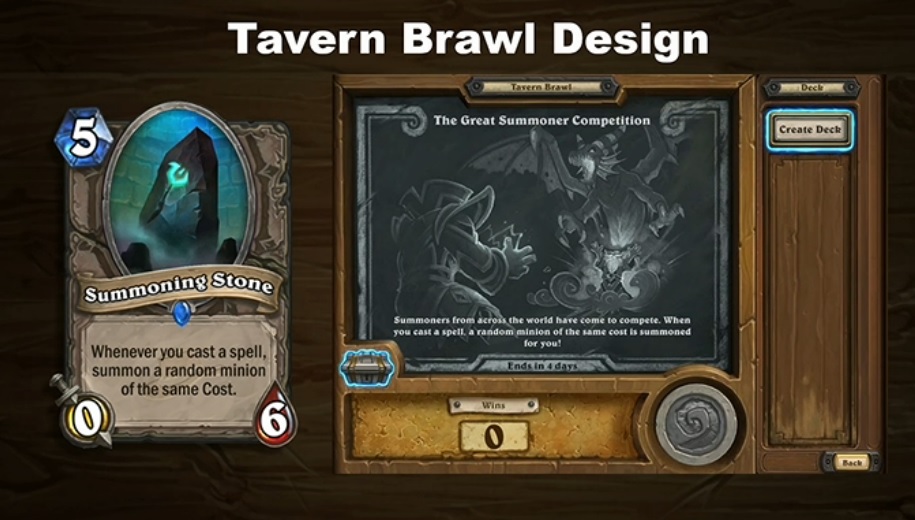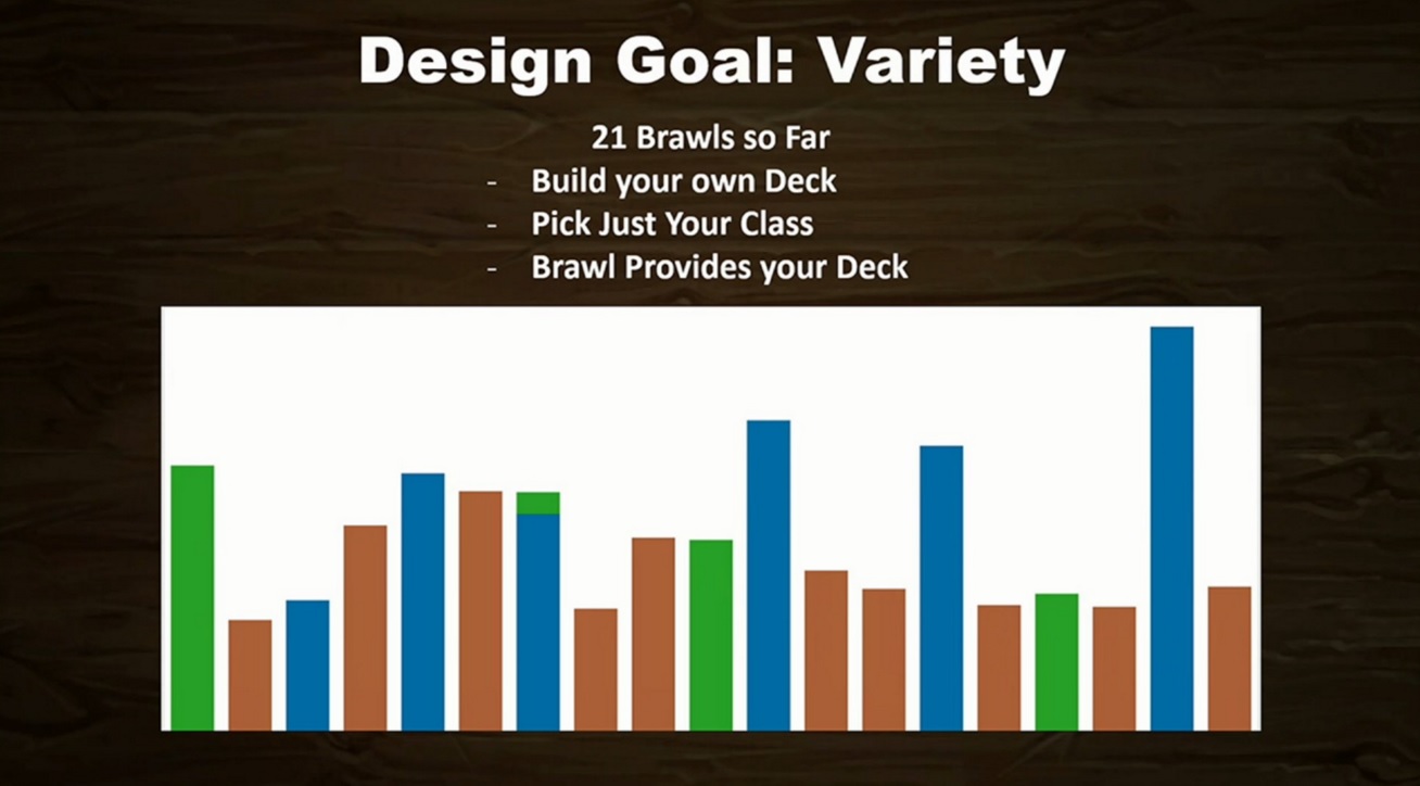 Mike Donais, Senior Game Desginer, est arrivé sur la scène afin de parler en détails du Bras de fer. Il nous a expliqué que le Brawl est un moyen pour les joueurs d'avoir du contenu hebdomadaire sur Hearthstone et de renouveler l’intérêt des joueurs entre la sortie de deux extensions. Pour les développeurs le Bras de fer doit être fun avant toute chose. Néanmoins, Mike Donais reconnait qu'ils n'exclurent pas la possibilité de voir un jour un mode classé pour le Brawl et pourquoi pas un rang Légende.