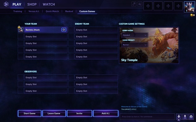 Lors la prochaine mise à jour, le nombre d'emplacements réservés aux observateurs dans les parties personnalisées passera de 2 à 6 ! Avec quatre emplacements supplémentaires, les observateurs pourront désormais commenter les parties en plusieurs langues, analyser les statistiques en détail ou suivre l'action en simultané sur toute la carte ! La capture d'écran ci-dessous donne un bon aperçu des salons après la mise à jour.