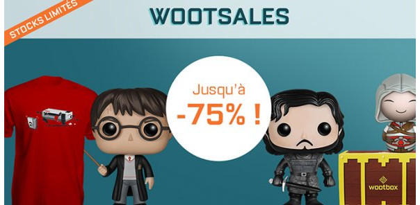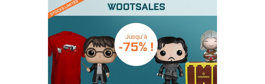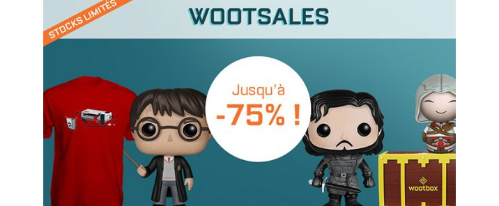 Les soldes d'été ont commencé, et le shop Wootbox se devait de vous proposer des prix exceptionnels sur ses produits. Les figurines sont à l'honneur, et elles viennent de multiples univers évoquant la culture geek. On va donc de Star Wars à Game of Thrones, en passant par Fallout. Vous pourrez également vous procurer des T-shirts à moindre prix (jusqu'à 75% de réduction sur certains modèles !). Enfin, des anciennes box sont également soldées, ce qui devrait vous permettre de faire le plein de goodies de tous genres.