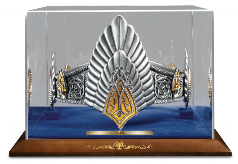 Une réplique de la couronne d'Aragorn après sa victoire face aux armées de Sauron. Valeur : 230€. Plaqué argent 925ème et or 24 carats. Ayez l'étoffe d'un roi !