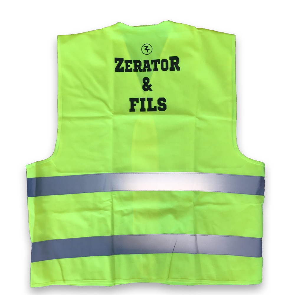 Il s'agit ni plus ni moins d'un véritable gilet de sécurité, utilisable pour des travaux de chantiers, de nuit , ou tout simplement à avoir dans votre voiture en cas d’incident avec la désormais célèbre inscription "Zerator & Fils" au dos. Un objet plus qu'insolite à avoir absolument qui montre que Zerator est bien plus qu'un simple streamer.