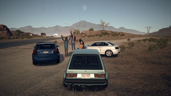 On aura l'occasion de se promener en ville, bien sûr, et dans le désert, mais aussi dans des canyons ou des montagnes avec une alternance jour/nuit appréciable et du plus bel effet. Les paysages sont donc plutôt variés mais on constatera rapidement, notamment en sortant de la ville, que l'univers proposé par Ghost Games manque tout de même un peu de vie. Il y a bien des oiseaux ou des feuilles qui volent, et on croise bien des véhicules ici et là (voitures, camions dont camions-poubelle, pas de motos en revanche) mais les piétons, eux, sont absents. On dirait qu'une seule chose les intéresse : les courses. On les retrouve en effet agglutinés par petits paquets autour des départs de courses et ils ne sont pas très crédibles. Vous avez beau percuter leurs véhicules, ils sont imperturbables et continuent à vous acclamer. Et si vous leur foncez dessus, ils continuent sans bouger, c'est comme si vous percutiez un bloc de pierre, pas très crédible. De même, en cas d'accident avec un PNJ, celui-ci se contente de s'arrêter et attend tranquillement que vous repartiez, comme si de rien était.
