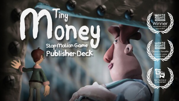 Réalisé par Dor Bar et Shachar Peters, deux artistes israéliens, entièrement en stop motion avec de la pâte à modeler, comme Wallace et Gromit, Tiny Money est un jeu d'aventure indépendant en point-and-click qui a déjà réussi à sortir du lot par son concept et sa direction artistique inspirée. Lauréat du Destruction Workshop lors de la White Nights Conference de Moscou en 2019 où il a aussi été la production favorite du public, il a également été élu meilleure réalisation technique lors de la Game Rome Conference 2019 du mois de novembre. Pour vous rendre compte du travail conséquent que cela représente, sachez qu'après avoir été sculptée en pâte à modeler puis moulée en silicone, chaque figurine est ensuite déplacée à la main à raison de 1500 photos pour chaque minute d'animation.